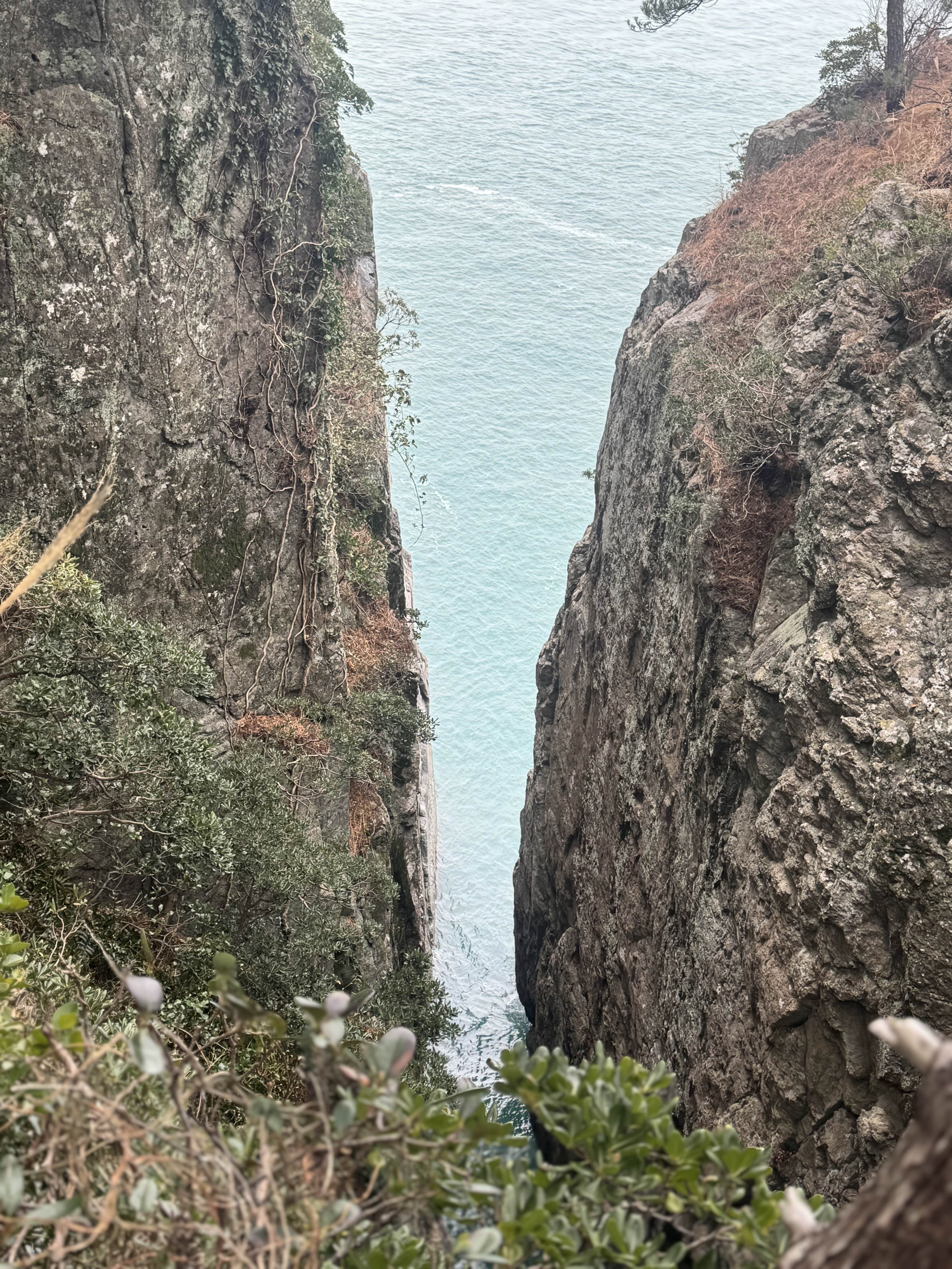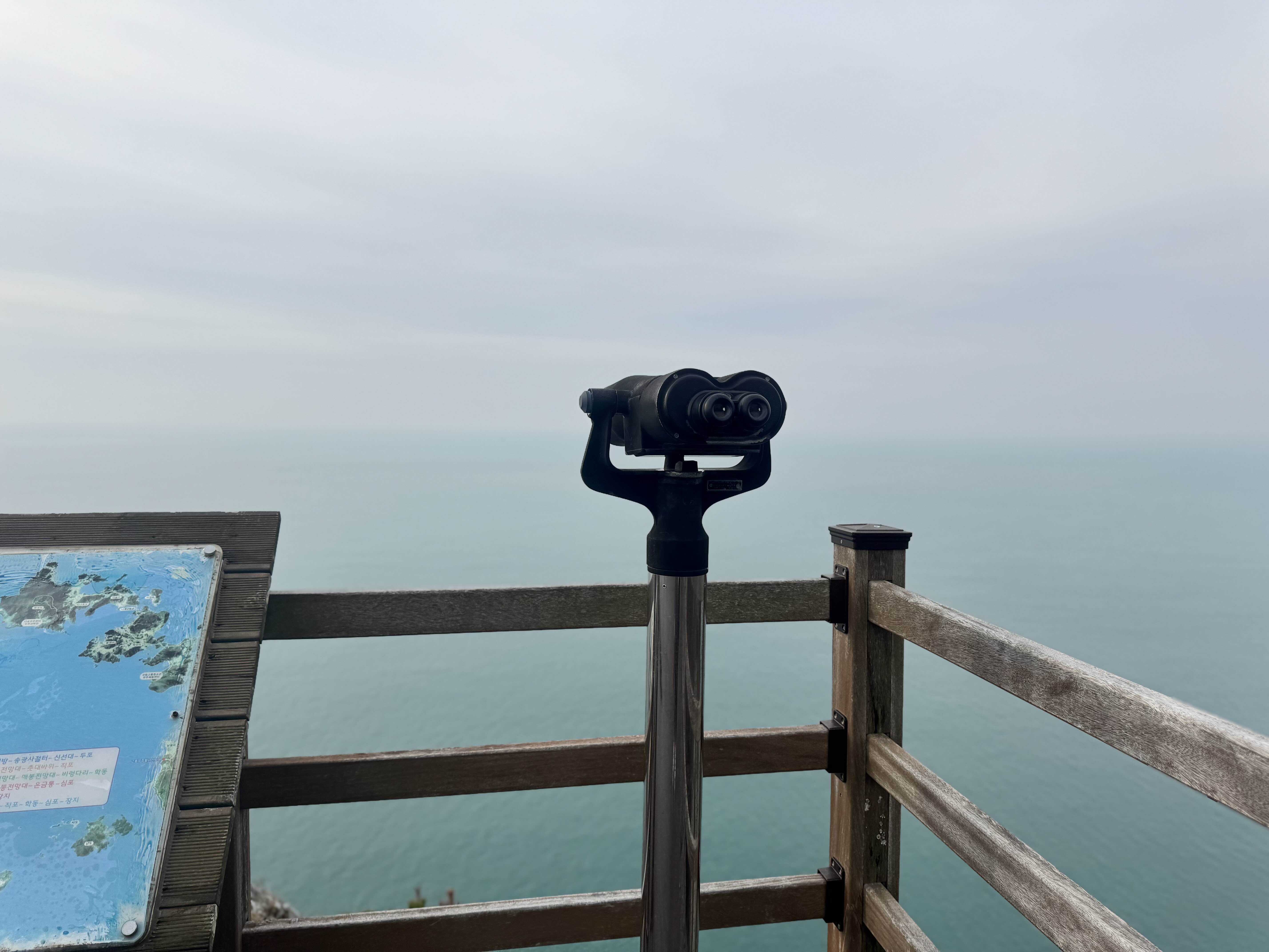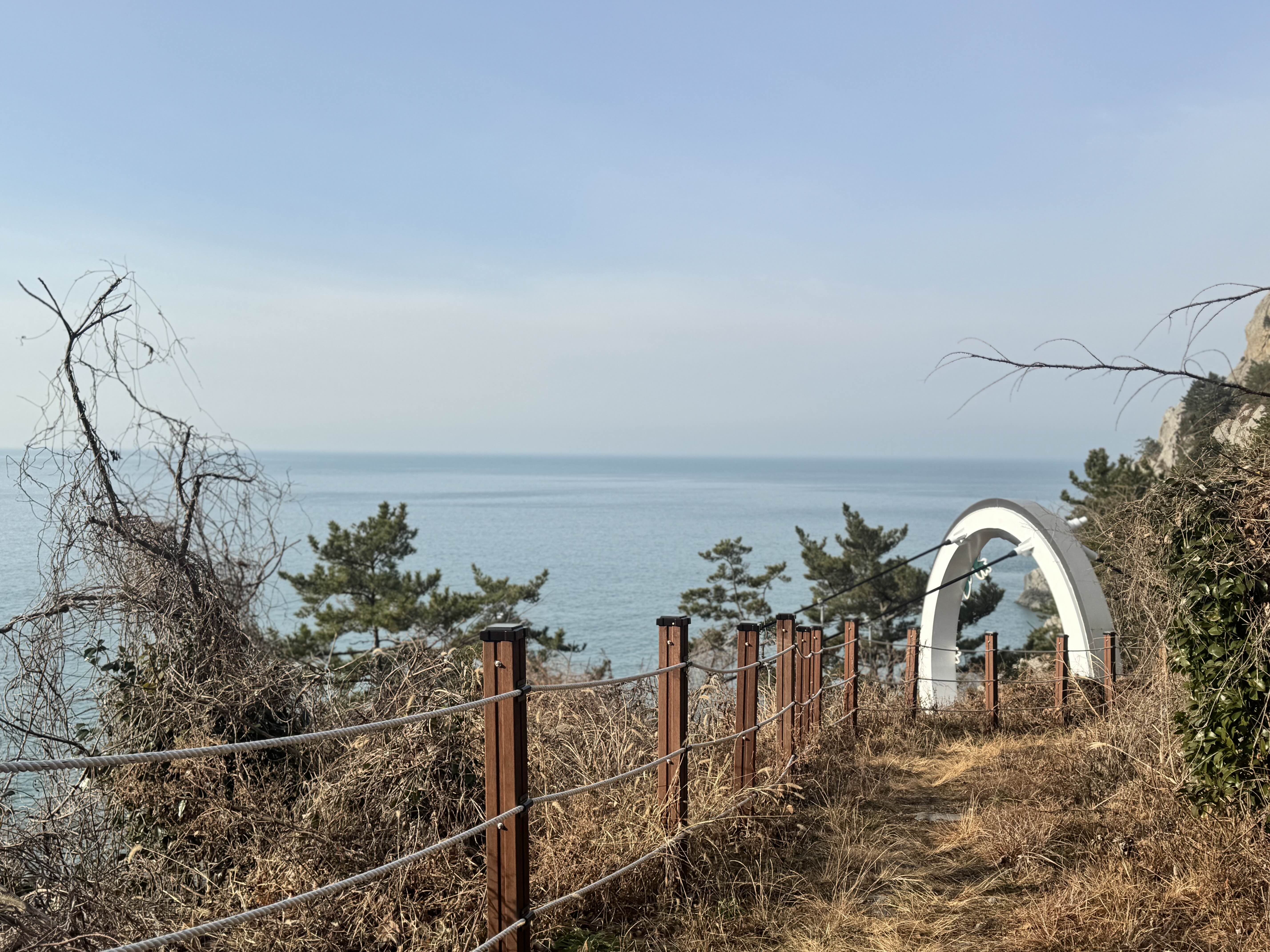 바다를 배경으로 비렁다리를 거리를 두고 바라보니
