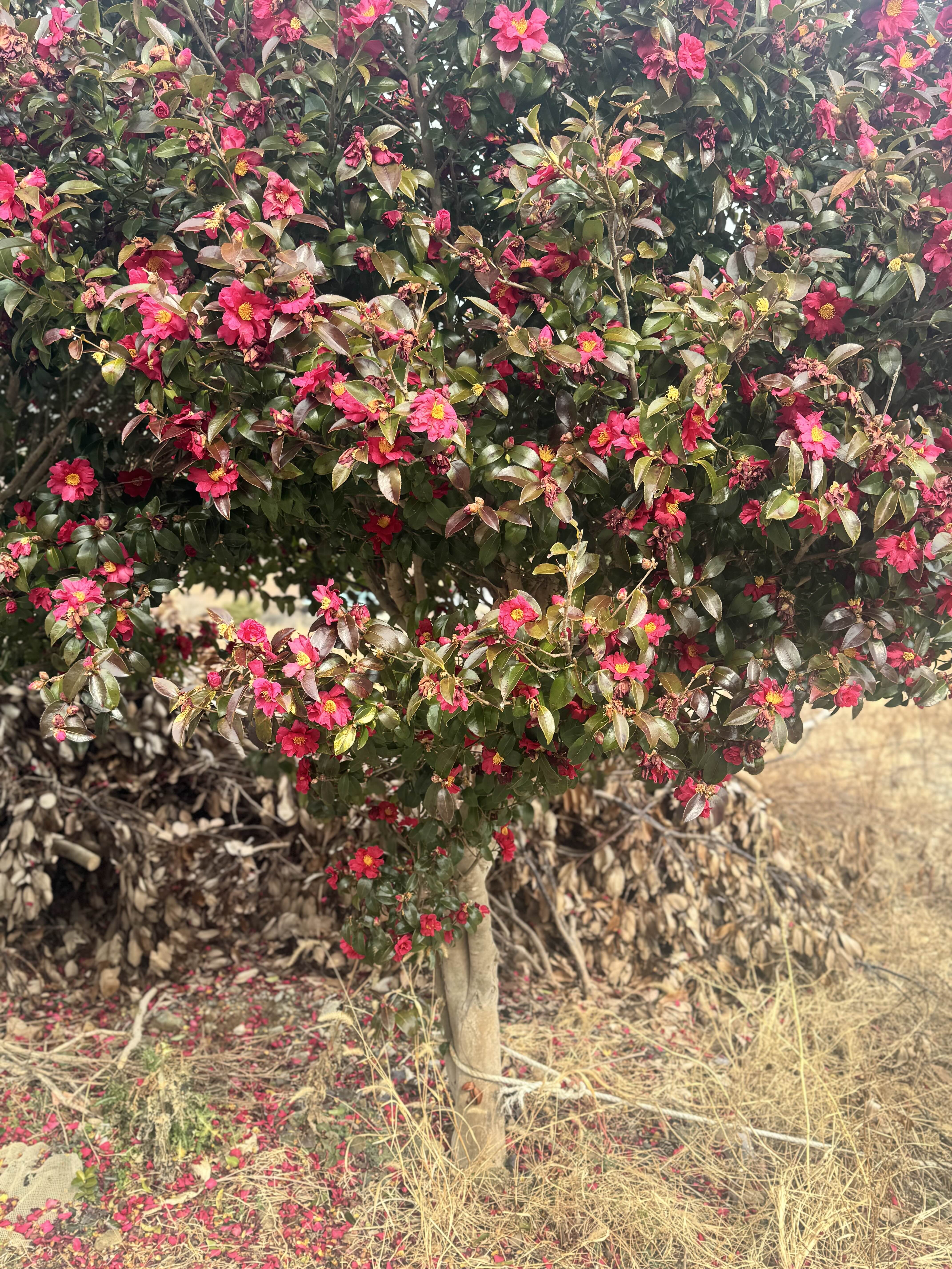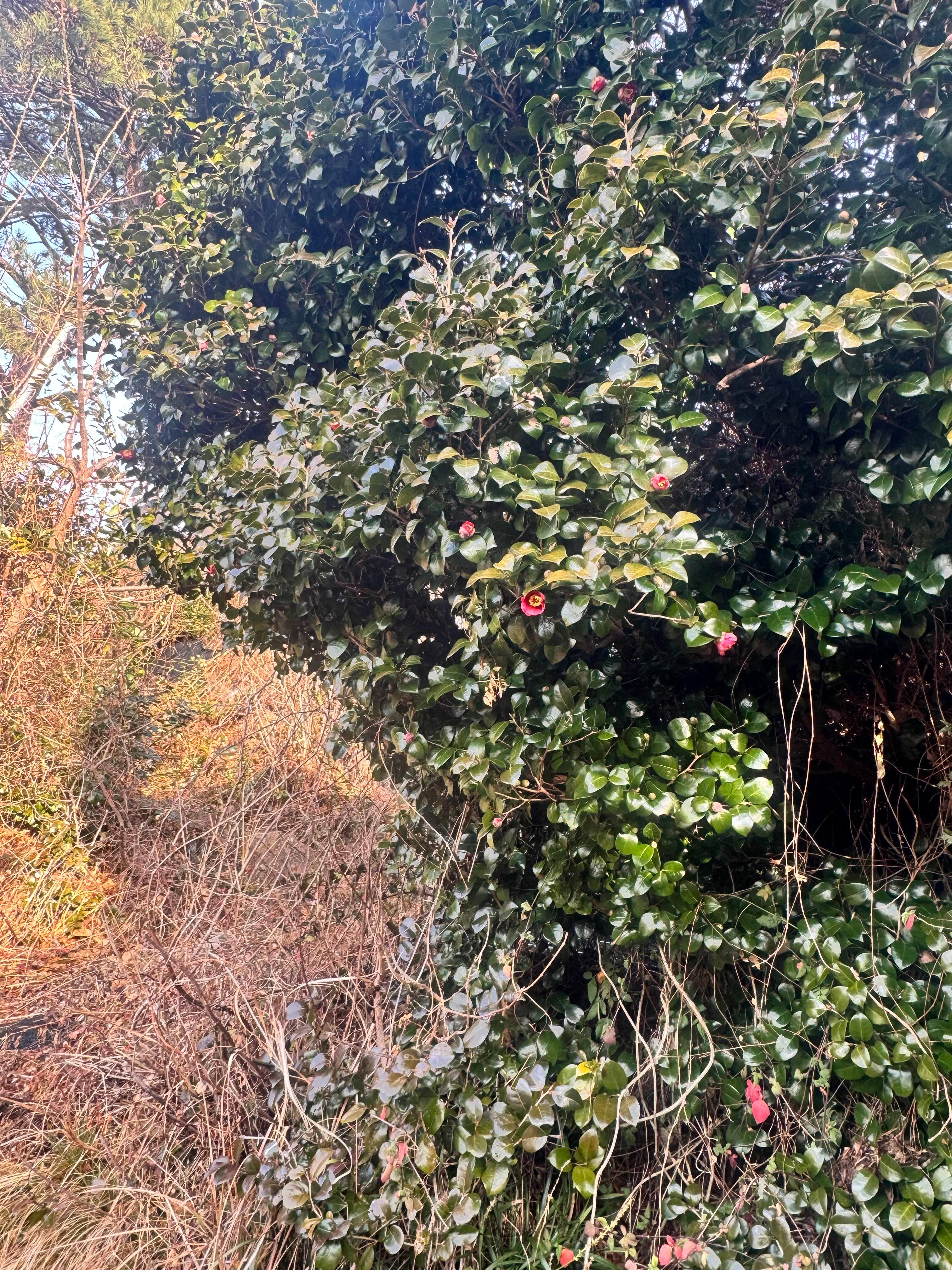마을 앞쪽에는 숲속보다 동백꽃이 많이 피었네요.