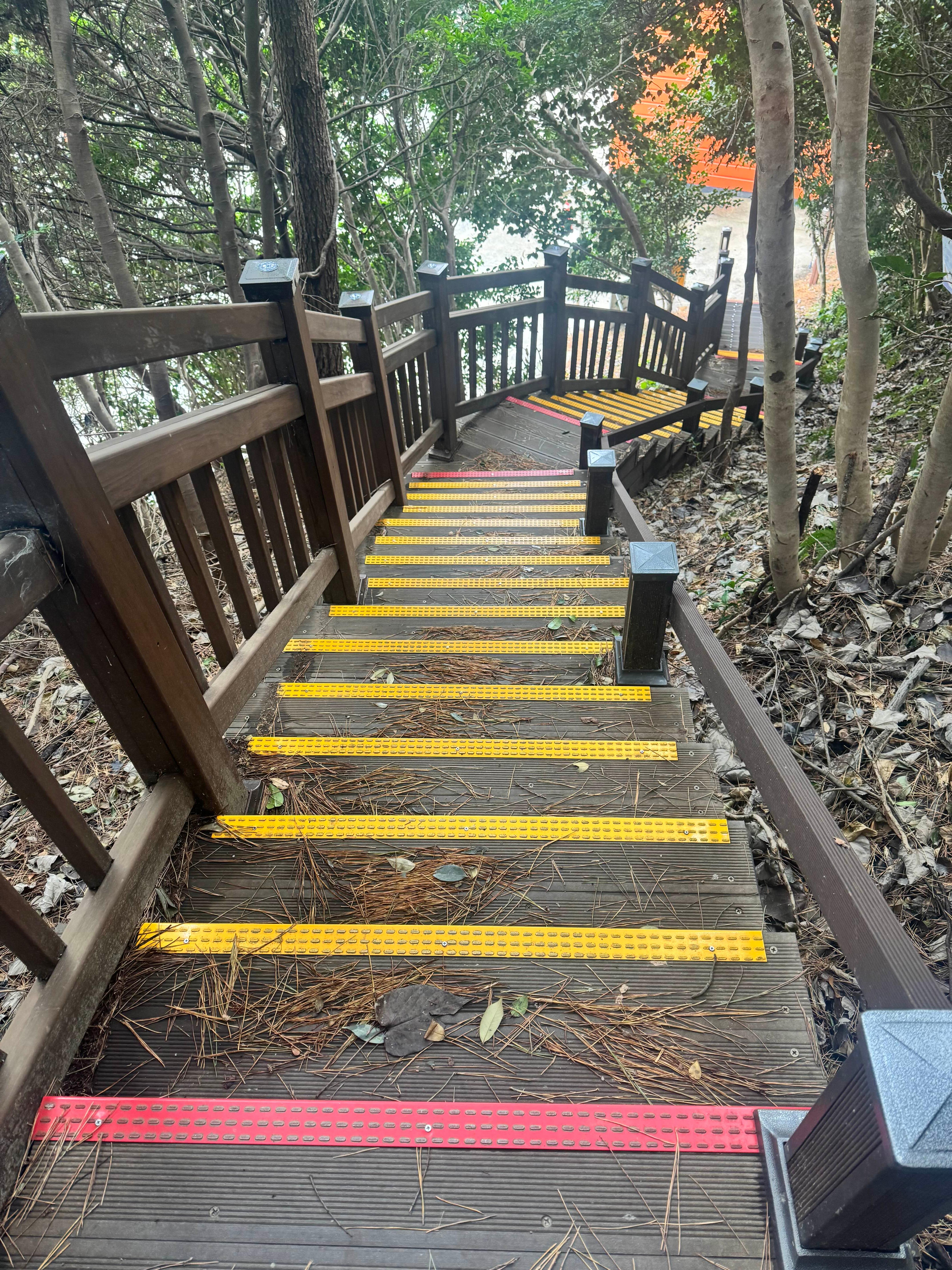 빨간색, 노란색 미끄럼 방지턱이 있는 계단이 보이면 비렁길 3코스의 막바지 입니다.