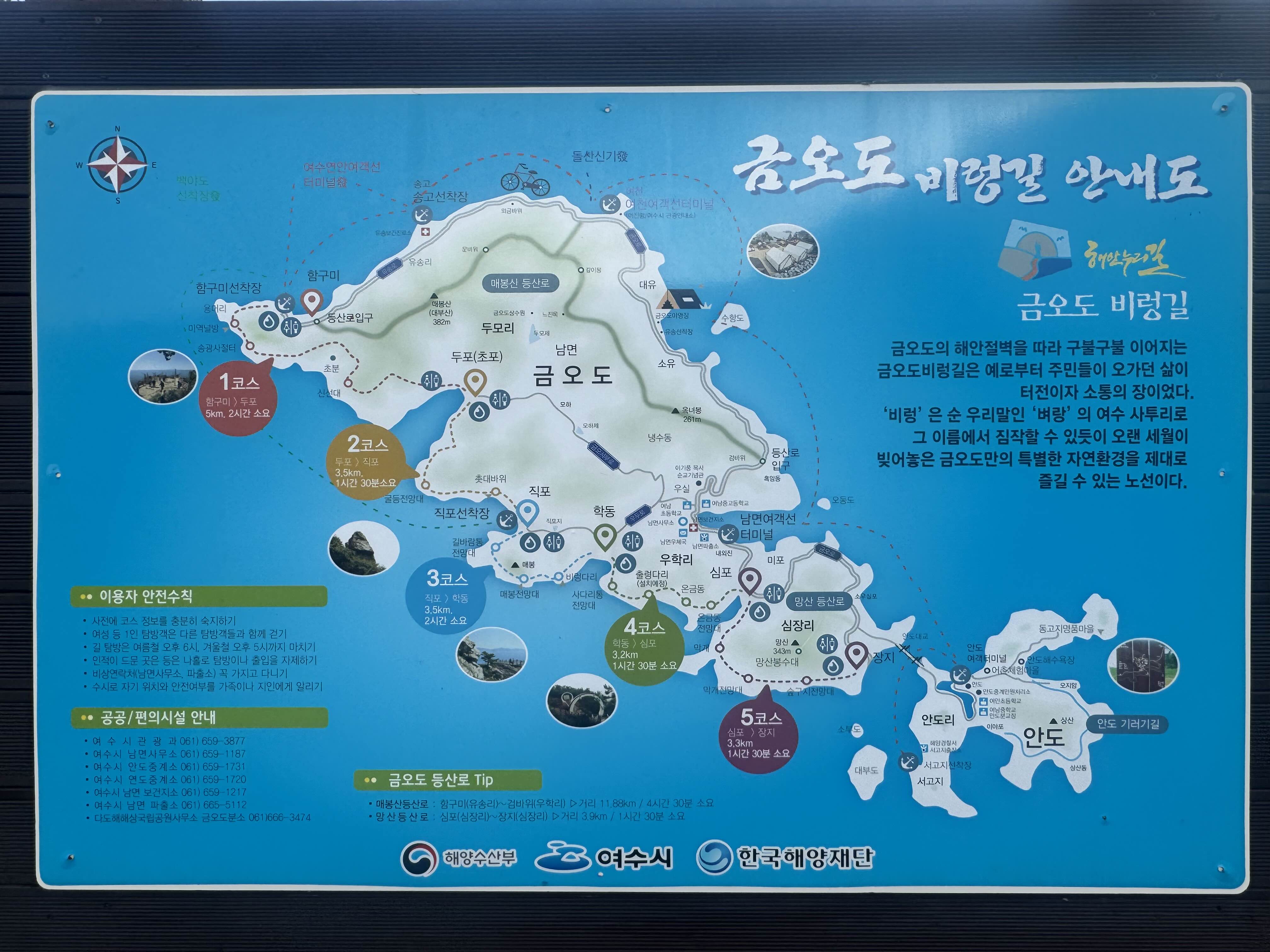 금오도 여천항에서 여수시에서 만든 금오도 비렁길 안내자료를 가지고 가시면 좋아요.