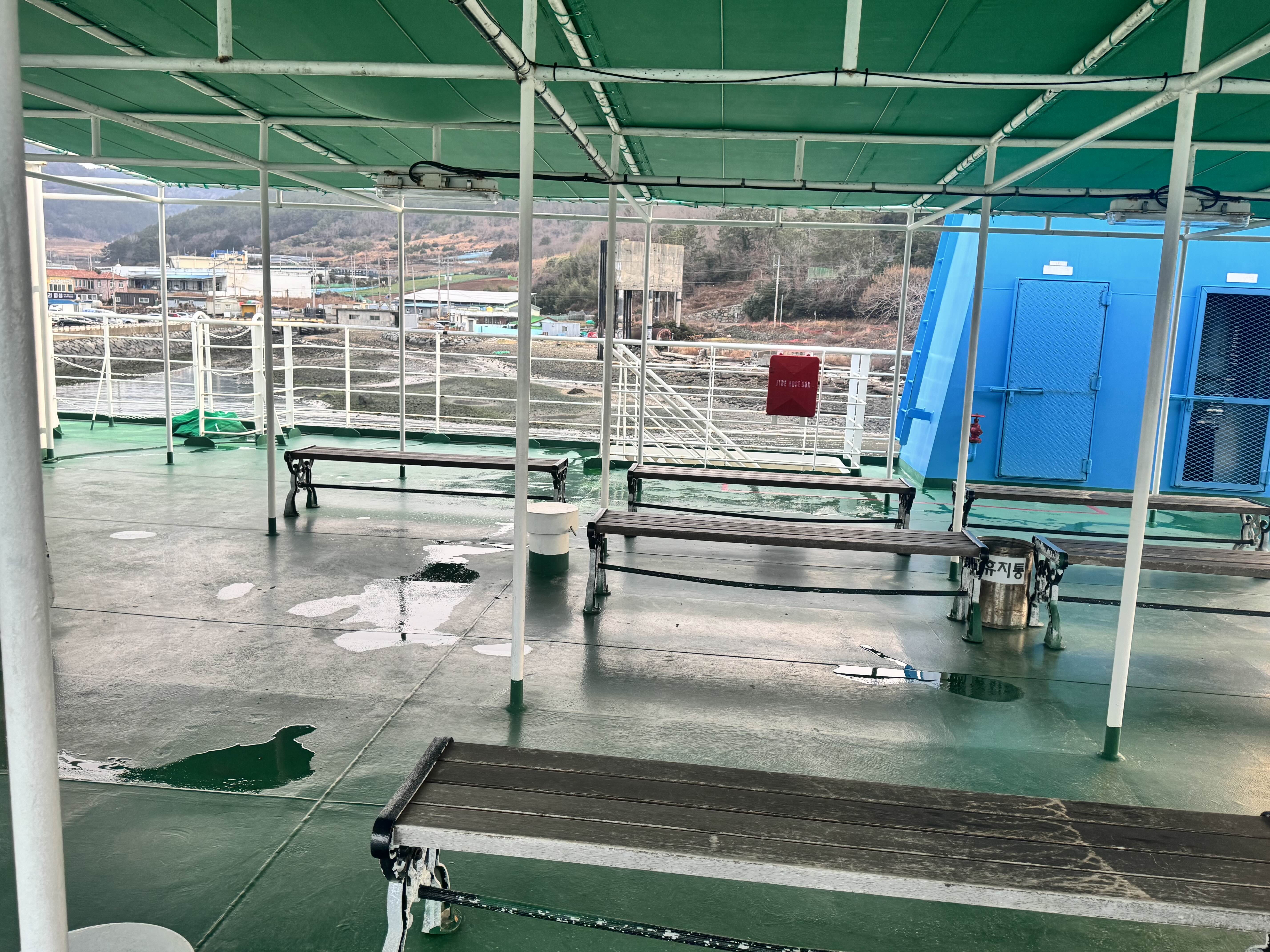 터미널에 일찍 도착하면 터미널 밖에 벤치에 앉아서
