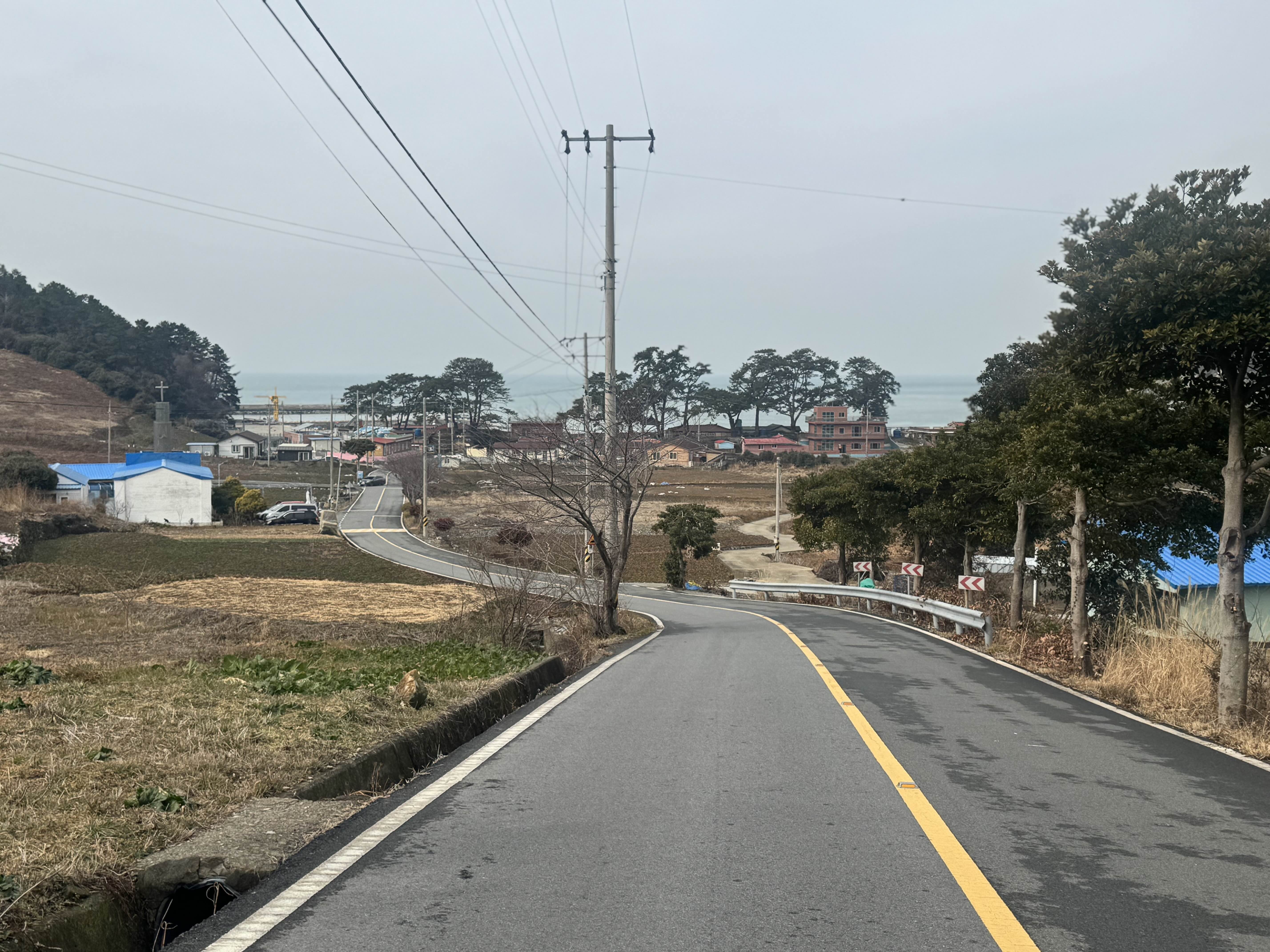 바다를 우측으로 끼고 이 도로를 따라 걸어가면 학동이 나와요.
